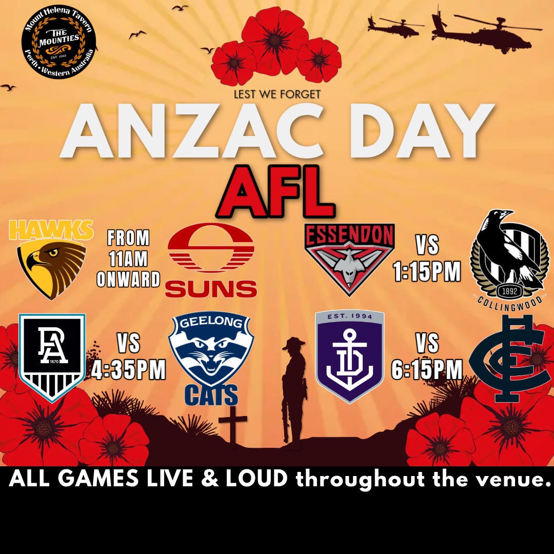 Join us for some of the BIGGEST AFL games of the season. The ANZAC Day games are a footy fans must watch.